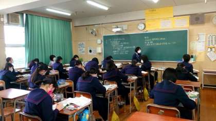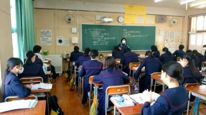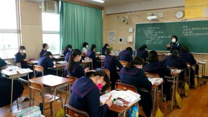 3年女子の皆さんが保健の授業を受けています。今日のテーマは生活習慣病。肥満や糖尿病、脳卒中、がんなどさまざまな病気があるそうです。飲酒や喫煙も生活習慣病発症の要因になるとのこと。日頃の生活習慣に気をつけることが大切です。
