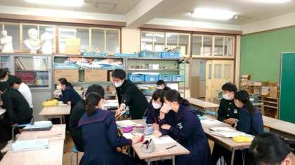 3年生美術科でクラスのロゴマークをデザインします。卒業文集の各学級のページに掲載するとのこと。皆さん互いにアイデアを出しあって素敵なロゴを考えましょう。