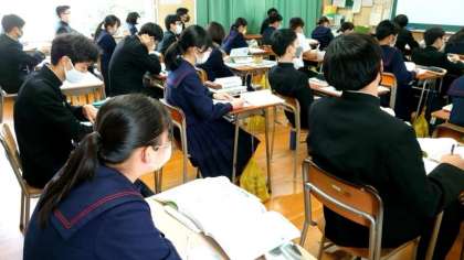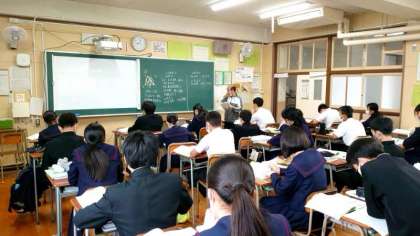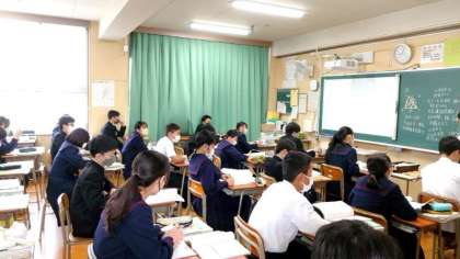 3年生数学科で中点連結定理を使った問題に取り組みます。三角形の2辺の中点を結ぶ線分は、底辺に平行かつ長さが半分になります。入試でも、この定理を使った図形の証明や線分の長さを問う問題が出題されるかも。