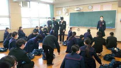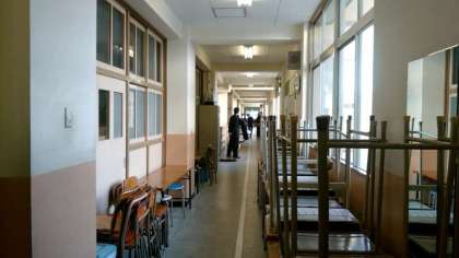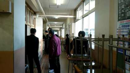 6時間目の授業が終わり、3年の皆さんが教室の机やイスを廊下に吐こ出しています。今日は学期に1度のワックスがけ。教室内を空っぽにして、美しく磨き上げます。終わりのホームルームは何にも無い教室で。いつもと勝手が異なります。