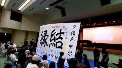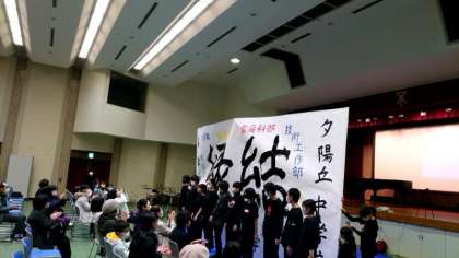 先週土曜日、天王寺区市立中学校合同文化祭が開催されました。区内3中学校の文化クラブが集い、日頃の活動を発表します。夕陽丘中と高津中書道部の皆さんがコラボして書道パフォーマンスを披露しました。