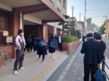 快晴の青空が目にまぶしい朝。今日も良い天気になりそうです。明日は1、2年生全員で校区の公園をボランティア清掃します。体操服と軍手が必要ですので、忘れないように気をつけましょう。