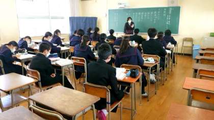 1年生国語科で文法の少人数分割授業が行われています。今日は「副詞と連体詞の見分け方」を教わります。いずれも同じ修飾語。主に修飾する文節(用言・体言)によって見分けることができるそうですよ。