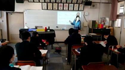 3年生音楽の授業で「花の街」を教わります。昭和22年、戦後の日本で生まれた楽曲で、日本の歌百選にも選定されているとのこと。美しいメロディーが印象的ですね。
