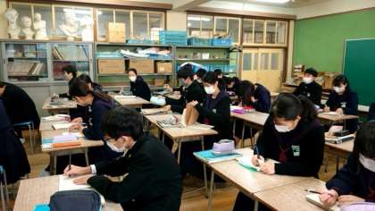 3年生美術の授業でデッサンに取り組みます。毎回モデルが交代し、みんながクロッキー帳に姿を描きます。授業の最初に行われる恒例の取り組み。皆さん腕前は上達しましたか?