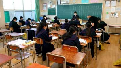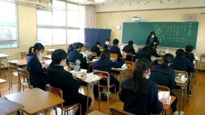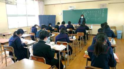1年生国語科文法の学習で実施している少人数授業。今日は「感動詞」を教わります。「あぁ」などの感動を表すもの以外に「もしもし」「どっこいしょ」も感動詞の種類だそうです。いろんな仲間を調べてみましょう。