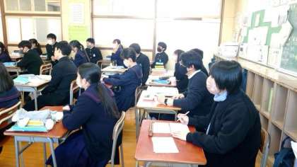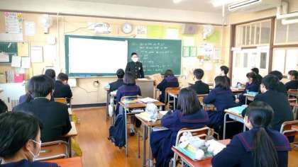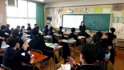 3年生英語の授業でインタビューテストを実施中。90秒間、C-NETのミック先生からの質問を英語で答えます。将来の夢や現在のお勉強など、さまざまな質問にアドリブで返答するのはとても難しいですね。