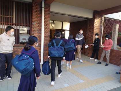 晴天が広がるものの、冷たい空気に指先がかじかむ朝。マフラーや手袋を着用する姿が多くなりました。1、2年生の学期末懇談は木曜日まで。午後の時間を有意義に過ごしましょう。
