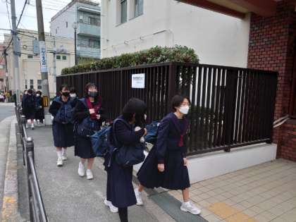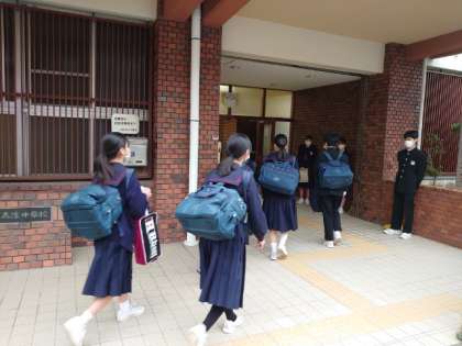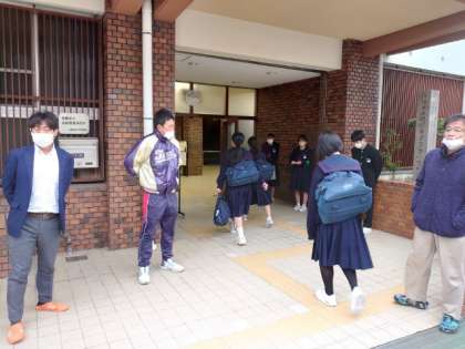 灰色の雲が空一面に広がる朝。皆さん、今日も元気に登校してきました。来週から冬休み。12月28日(水)から1月4日(水)は、学校閉庁でお休みになります。