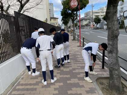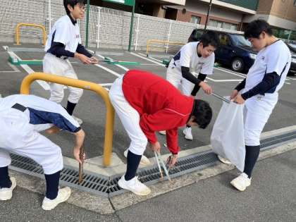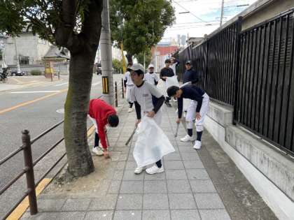 練習を終えた野球部の皆さんが学校周辺をお掃除してくれています。来週から始まる3学期にむけて通学路を清掃します。率先して奉仕活動に取り組む気持ちが嬉しいですね。