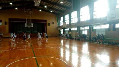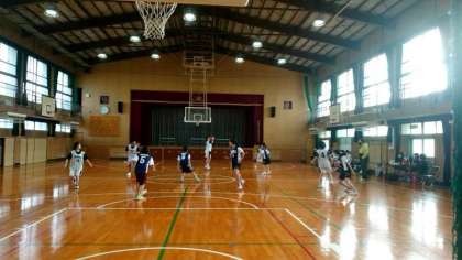 体育館で女子バスケットボール部が練習試合を行っています。他校の選手とゲームを通して技術を磨きます。新年最初の試合に皆さん気合いが入っているようです。