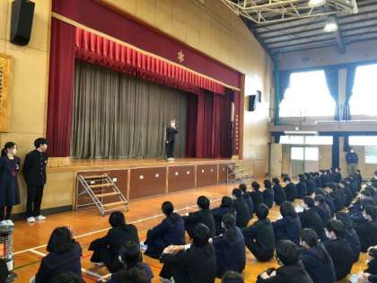 今日から3学期が始まります。全校生徒が集まり、体育館で始業式が行われました。今年は卯年。皆さんにとって大きく跳ねる(飛躍する)年になりますように!