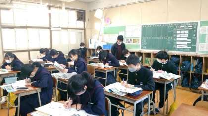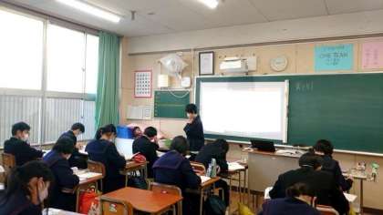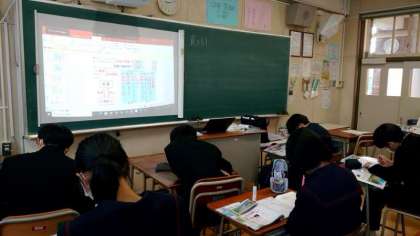 1年生社会科の授業で鎌倉幕府の仕組みを学習中。これまでの天皇(上皇)や貴族の政治に代わって、武士が初めて政権を握って築いた組織です。侍所や政所、門注所の3つの役割をおさえましょう。