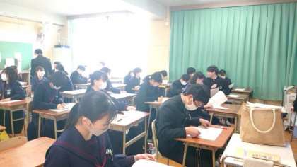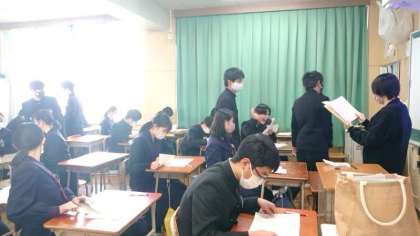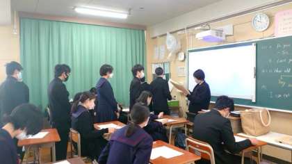3年生英語の授業で実力テストの結果が返ってきました。中学校で受ける実力テストは今回がラスト。先生が解説してくださった出題のポイントや間違いが多かった問題の確認・復習をぜひすすめましょう。