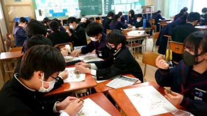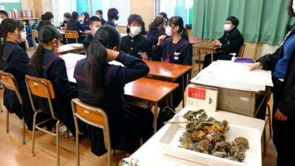 1年生で栽培していた「はるかのひまわり」。花が枯れた後の乾燥工程が終わり、みんなで種を収穫します。阪神・淡路大震災で亡くなられたはるかさんの自宅跡地に咲いたひまわりの花。防災や生命の尊さを考える機会として、このひまわりの種の子孫が全国で栽培されています。皆さんが収穫した種が来シーズンも咲きますように。