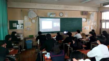 長崎と高津中学校をオンラインでつなぎ、2年生平和学習が始まりました。原爆が投下された当時の惨状をお話しいただきます。実際の体験に基づくお話は強く心に響きます。皆さん集中して耳を傾けています。