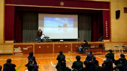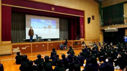 お話の後、車イスの取り扱い方を教わりました。金曜日には実際に車イス体験を行うとのこと。体験を通して、福祉(バリアフリー)に関する新たな気づきや視野が広がると良いですね。