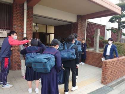雲の合間から陽光が差す朝。今朝も皆さん元気に登校してきました。来週水曜日から公立高校受験にむけた進路懇談を行います。3年生保護者の皆様、担任から日時の連絡がありますので、ご予定ください。
