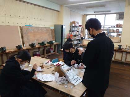 2年生技術科で製作している電子機器「コロックル」。電子部品の基盤への取り付けも終わり、完成が見えてきました。パソコンにつないで上手く作動するかを確かめる人もいる模様。プログラミング学習で使うそうですよ。