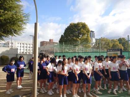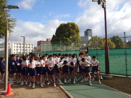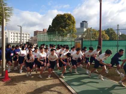 今日は1、2年生が真田山公園で1500m走にチャレンジします。1時間目は2年1、2組が公園を駆け抜けます。皆さん、頑張りましょう!