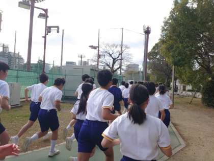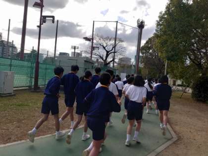 スタートの合図でみんなが一斉に駆け出しました。公園3周は学校で走るより好タイムが出やすいみたい。皆さん自己ベスト更新できましたか?