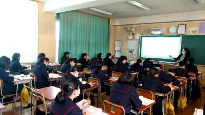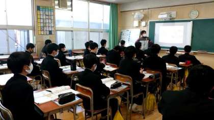1年生の皆さんが保健の授業を受けています。今日は「食生活と健康」について学習します。朝ごはんは1日の中で最も大切な食事と言われます。体温を上げ、身体のリズムを整える効果があるとのこと。1日を元気に過ごすために、しっかり朝ごはんをいただきましょう。
