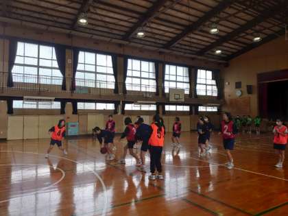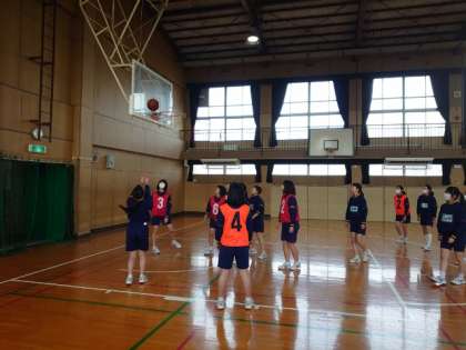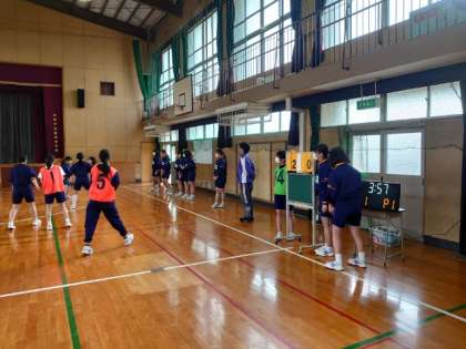 体育館から歓声が聞こえてきました。3年女子の皆さんがバスケットボールの試合を行っています。中学校の体育の授業も残りわずかになってきました。みんなと一緒に楽しくプレーしている姿が微笑ましいですね。