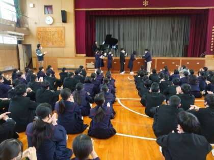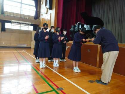 先週金曜日に開催された1年百人一首大会。今朝の学年集会でカルタの枚数を多く獲った仲間の表彰式が行われました。先生から1人ずつ賞状が手渡されます。みんなの暖かい拍手が良いですね。