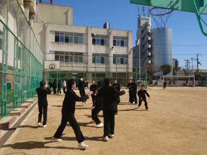 給食をいただいた1、2年生が運動場に出てきました。貸し出し用のボールを使って、男女仲良く遊んでいます。今日は天候に恵まれ、春を思わせる陽気になりました。皆さん、額に汗を浮かべて楽しんでいます。