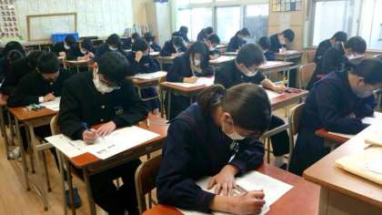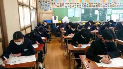 2時間目、社会科のテストが始まりました。平安時代や鎌倉時代の問題が出ている模様。授業で教わった内容もありますね。皆さん記憶をたどりながら問題を解いています。