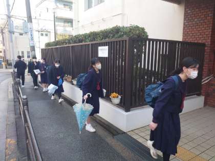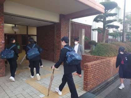 登校中、急な通り雨に遭った人もいる模様。教室で濡れた学生服を拭いてくださいね。明日は公立高校一般選抜の願書出願日。出願に行く人は関係書類と昼食(お弁当)を忘れずに持ってきましょう。
