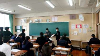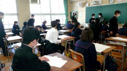 先週行われた学年末テストが返却されています。2年生英語科も先生が1人ずつに解答用紙を手渡しています。点数に一喜一憂する光景は今も昔も変わりません。結果が返され、ここからが大切です。お家での見直し、振り返りをしっかり取り組みましょう。