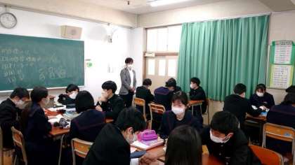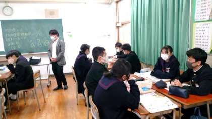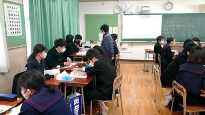 2年生英語科で取り組んでいる暗唱練習。各グループで教科書のお話を役割分担し、登場人物のセリフを覚えます。来週の授業から、グループ発表を行うそうです。英文を覚えるだけでなく、感情を込めて表現できるかがポイントです。