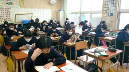 授業が始まる前の1年生の教室で、皆さん読書を楽しんでいます。お友達とおしゃべりするのも楽しいですが、静かに本を読みふける時間も、しっとりとしていて良いですね。