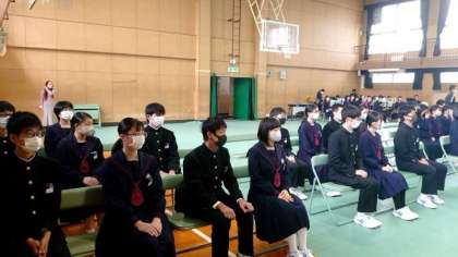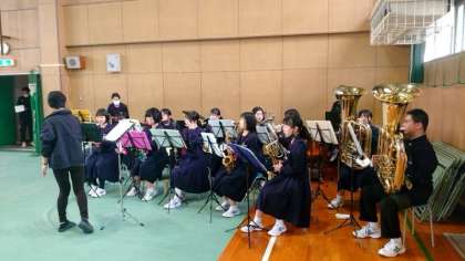 明日の卒業式にむけた予行演習が行われています。明日の式に参加する1、2年生や吹奏楽部の皆さんのスタンバイ完了。素晴らしい式になりますよう、よろしくお願いいたします!