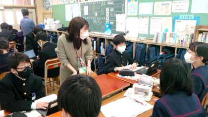1年生数学科で「資料の活用」について学習中。今日は相対度数を教わります。各階級の数値(度数)が全体の中で、どのくらいの割合になるかを示すのが、相対度数。(各階級の相対度数を足し算すると100%になります)授業では、タブレット端末を使って相対度数を求めます。皆さん正解できましたか?
