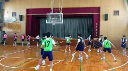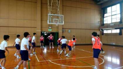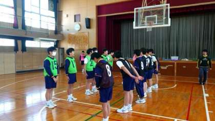 2年生男子体育でバスケットボールの試合が行われています。各チームが優勝をめざして熱い戦いを繰り広げています。体育の授業も残りわずか。みんなでゲームを楽しんでいます。