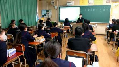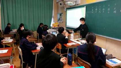 1年生国語の授業で調べ学習の発表会を行っています。以前の授業で調べた「ユニバーサルデザイン」について発表します。調べた内容をパソコンでスライドにまとめてみました。いろいろな資料を検索した様子がよくわかる発表でした。