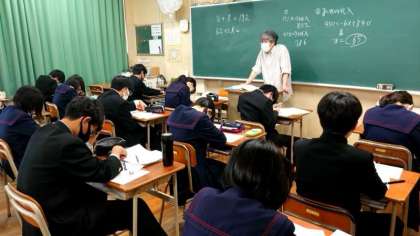 2年生数学の授業で、3日(金)に行われた公立高校の入試問題を解いています。先生の解説を聞くと、現在(2年生)の力でも解ける問題がたくさんありますね。国語科同様、進級を前にして、受験生としての意識を高めています。
