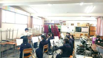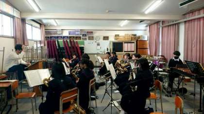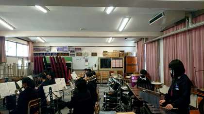 入学式を明後日に控え、吹奏楽部の皆さんが練習に励んでいます。式最初の入場時、ブラスバンドの生演奏で新入生を迎えます。練習も今日・明日の2日のみ。皆さん、頑張ってくださいね。