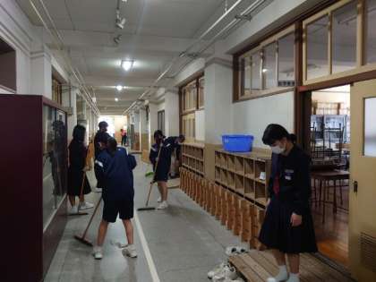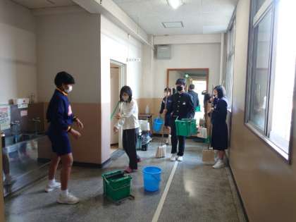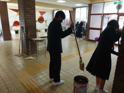 準備は式場だけではありません。玄関ピロティや廊下・階段、トイレ清掃を頑張ってくれています。新入生の皆さんが気持ち良く登校してもらえるよう、一所懸命お掃除している先輩の姿がとっても素敵です。
