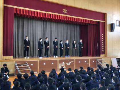 始業式では、各学年所属の先生方を紹介しました。今年1年間、授業を始め、諸行事でご指導いただきます。生徒の皆さん、よろしくお願いいたします!