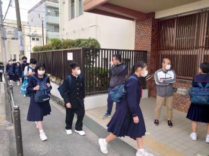 遠くの山がうっすらと霞む朝。今朝も皆さん元気に登校してきました。来週火曜日は3年生対象に「全国学力学習状況調査」(国・数・英のテスト)が実施されます。3年生の皆さん、3月に教わったことを思い出し、この週末はテストに備えましょう。