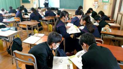 2年生英語の授業で教科書の英文を読み進めます。主人公が春休みに福井県を旅行したお話です。恐竜博物館を訪れたり、お蕎麦(おろし蕎麦)を食べたようですね。皆さんは、春休みにどこかに出かけましたか?