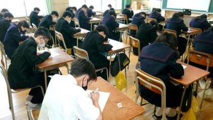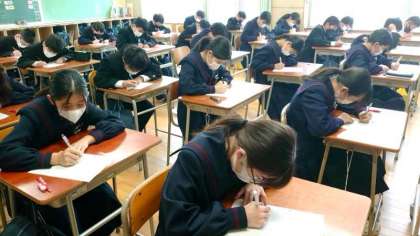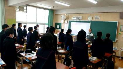1年生数学の授業で四則演算のプリントに取り組んでいます。計算力を身に付けるため、授業の最初の5分間、50の問題にチャレンジします。皆さんスイスイとペンを滑らせ、問題を解き進めます。間違えた問題は必ずやり直しましょうね。