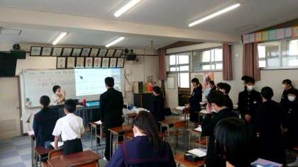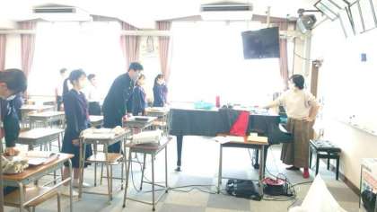 2年生音楽の授業で「サンタルチア」を歌います。イタリアのナポリの民謡とのこと。サンタルチアとは港町ナポリの守り神(女神)。美しい港町の風景を思い浮かべながら、みんなで歌いましょう。