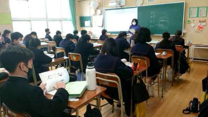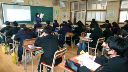 1年生で家庭科の授業が始まりました。技術科と家庭科の先生が定期的に入れ替わる予定です。今日は先生から家庭科ファイルが配られました。授業で使用するプリントを順に綴じていきます。綴じ忘れがないように気をつけてくださいね。