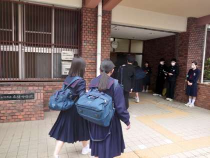 連休明けの月曜日。昨日来の雨も上がり、皆さん元気に登校してきました。明日は2年生内科検診を予定しています。夏の体操服(上)の用意を忘れないよう、気をつけましょう。