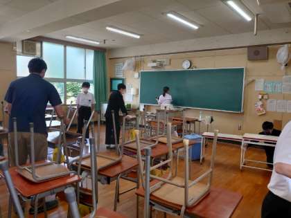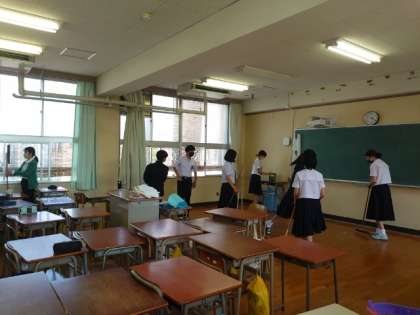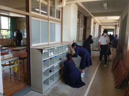 校舎3階では、2年生の皆さんがお掃除中。教室前のくつ箱を1つずつ丁寧に雑巾がけしてくれています。みんなが気持ち良く過ごせるよう、一所懸命取り組み姿がステキです。