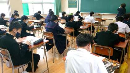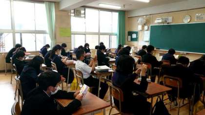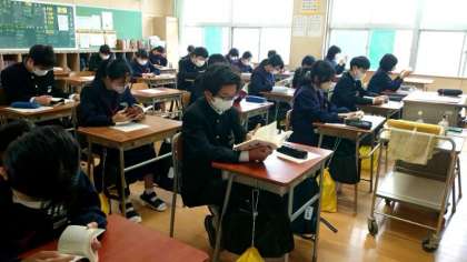 月曜日の朝は全校集会ですが、今日は3年生の全国学力・学習状況調査のためお休みに。1年生の教室では読書活動を行っています。授業が始まるまでのひとときをみんなでゆったりと過ごします。気持ちをスッキリさせて今日も頑張りましょう。